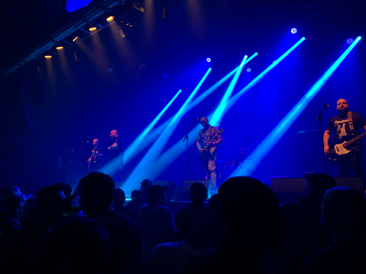 The gig starts very early and I absolutely don’t want to miss the first band, Des-Kontrol, who are the only ones tonight I’ve never seen live, even though I own some of their albums. The Basques have the hard task of warming up the atmosphere and they do it very well! Born in 1996 in Arrasate/ Mondragòn (halfway between Eibar and Gasteiz/Vitoria), a town from which RIP and Iskanbila also came, they had split up in 2010 (also due to arguments with a part of the Spanish RASH for demented reasons even by skinhead standards… about some t-shirt… absurd) then reformed a few years ago (it also seems that in 2022 they released a record that I’ve never seen… I’ll try to look it up!), and they look in great shape! Technically they are absolutely good, they hold the stage well (people seems really happy) and offer us a 40-45 minutes of excellent melodic streetpunk, with many pieces taken from the “Duintasunez Eutsi!” album and they finish with a cover of “Mundo muerto” by RIP. A very welcome surprise.